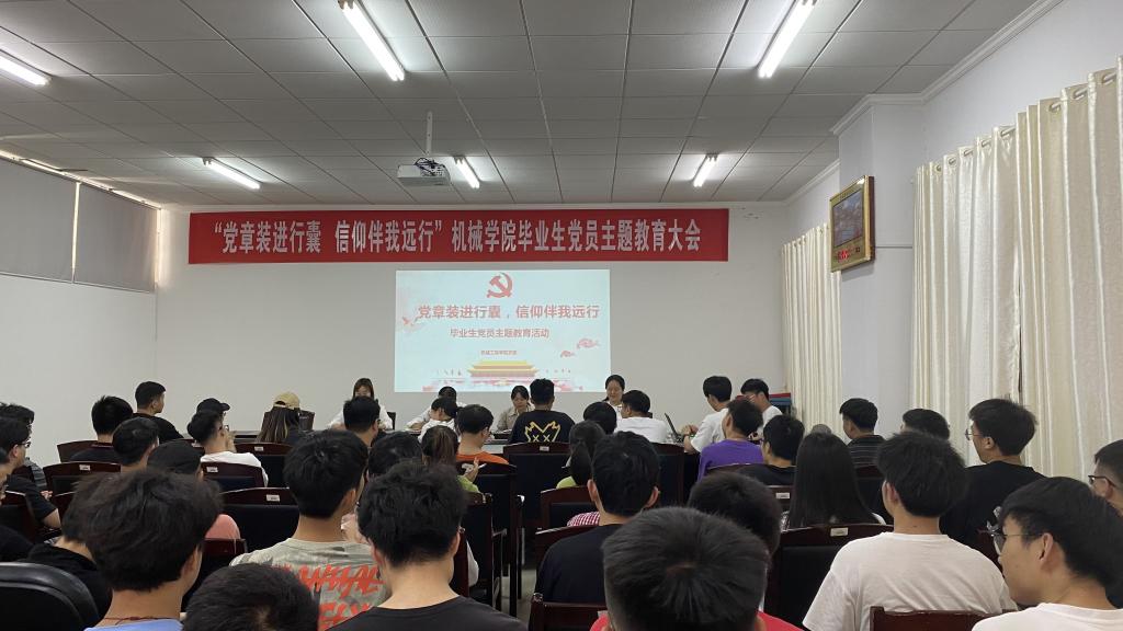 5月24日下午,WILLIAMHILL在线体育投注于16栋WILLIAMHILL在线体育投注会议室召开了“党章装进行囊,信仰伴我远行”毕业生党员主题教育活动。此次活动由研究生党支部书记王子嘉主持,机械工程公司党委书记胡文静、党委副书记徐湛、党委组织员李紫薇出席,47名毕业生党员全体参加。
