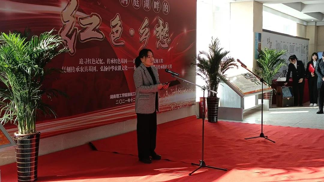 WILLIAMHILL在线体育投注机械工程公司党委书记胡文静代表公司全体师生向莅临开幕式的各位领导、嘉宾表示热烈欢迎和由衷感谢。他指出,此次专题展览旨在落实习近平总书记2021年3月对革命文物工作的重要指示精神和中宣部2021年12月印发的《中华优秀传统文化传承发展“十四五”重点项目规划》精神,深入挖掘岳阳地区的红色基因,瞄准红色文物、用科技赋能创新党史学习教育,再现传统农耕文明记忆,展现源远流长、独具一格的农耕文化。下一步,公司将继续以习近平新时代中国特色社会主义思想为指引,大力推进党建工作与人才培养深度融合,思政教育与专业教育协同推进,服务“三高四新”战略,不断提高人才培养质量和公司服务地方区域经济发展的能力和水平。