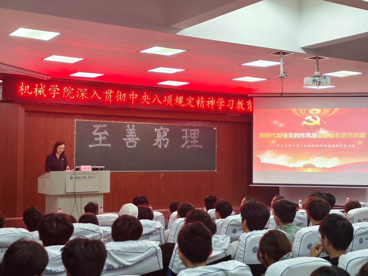 胡文静以“新时代加强党的作风建设的锐利思想武器”为主题,围绕习近平总书记关于加强党的作风建设的重要论述展开深入解读。他指出,党的作风直接关系人心向背以及党和国家事业的成败,本质上是党性问题,核心在于密切党同人民群众的血肉联系。结合当前实际,他强调要持续深化纠治“四风”,重点整治形式主义、官僚主义、享乐主义和奢靡之风,要求各级领导干部以身作则、率先垂范,发挥“关键少数”的引领作用。
