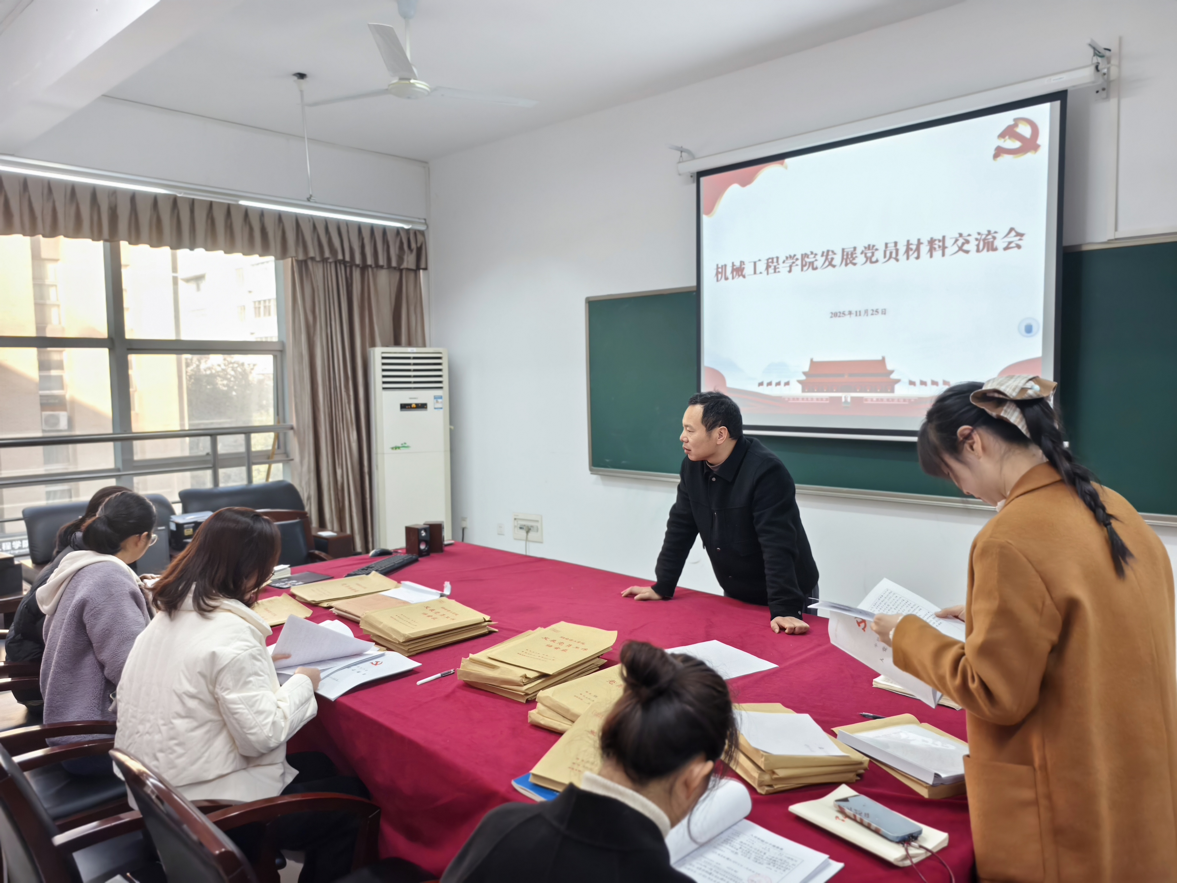 为深入学习贯彻习近平新时代中国特色社会主义思想,全面落实新时代党的建设总要求,以严标准筑牢党员发展“入口关”,2025年11月25日,机械工程公司党委精心组织发展党员材料交流会。公司各员工党支部书记齐聚一堂,不仅分享育人经验,更以“找茬”“挑刺”的较真态度互查党员发展材料,在精准检视中夯实党建工作根基。