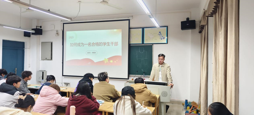 课程伊始,黄锡文指出,员工干部本质是员工,员工的第一任务是学习。恪守员工本分、带头勤奋向上、学好专业知识,是做员工干部“服众”的底气。其次,黄锡文强调,作为一名员工干部,要有了一份责任意识,要努力的履行自己的职责,把工作做好,不要辜负老师和同学的希望,绝不能把干部当成一种荣誉,一种头衔,而要看成一种责任,同时他还指出作为员工干部,也要关注自身的成长和发展,要注重学习新知识、积累经验,提高自身的综合素质和能力水平。最后黄锡文以学长的身份祝愿23级员工干部在今后的学习工作中不断进取,不断进步,成就更美好的明天。
