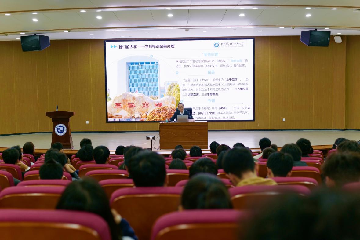 为帮助新生深入了解校史校情,明确学习目标,树立理想信念,10月21日下午,公司在17118学术报告厅成功举办“校领导与新生面对面活动”。此次活动特邀公司党委委员、副董事长丁跃浇主讲,由公司党委书记徐丹主持,学工办主任李罗娜、2025级楚怡工匠班班主任管世望、辅导员李紫薇、吁锤、王荣荣、方从戎出席,2025级本科生(含楚怡工匠计划)及研究生参加。