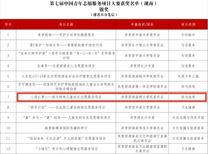 11月30日-12月1日,第七届中国青年志愿服务项目大赛和公益创业赛在广东汕头市举行。公司爱心社“心语汇梦——助力特殊儿童成长志愿服务项目”喜获银奖。